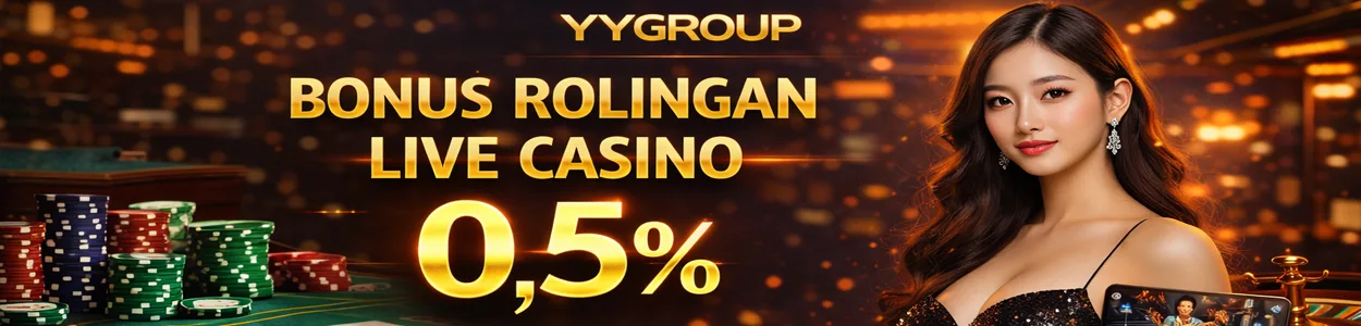- Bonus Rollingan Slot 0,5% yang anda dapatkan dari setiap hasil turnover bettingan dalam seminggu di semua permainan LIVE CASINO dan dibagikan otomatis setiap hari SENIN pukul 00.00 WIB